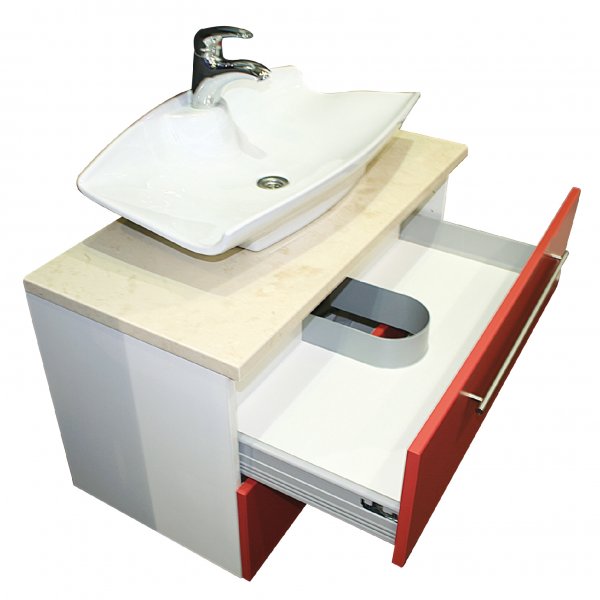Ограничитель для сифона, устанавливается в пропил в днище ящика под раковину.